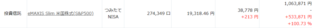 損切りせずに積み立て続け、旧積立NISAを放置しているだけで増える結果となり、今では元本が2倍以上になっています。